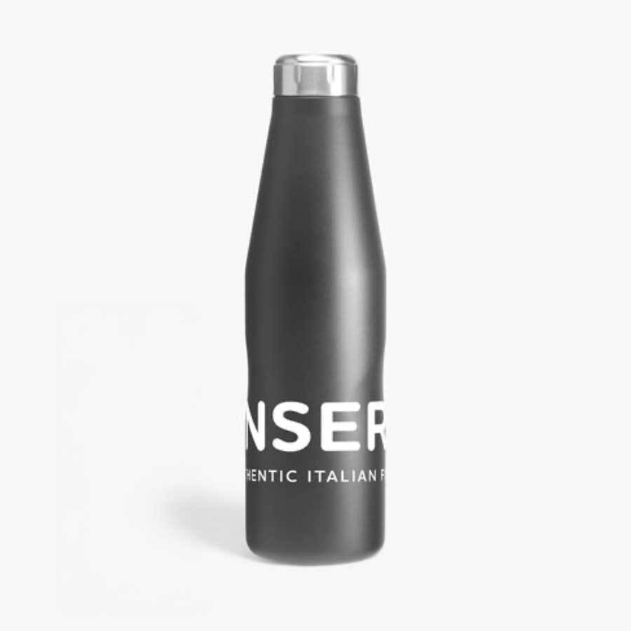 A watertight and insulated water bottle with the original corporate logo.
